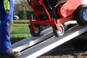 Werk je vaak op oneffen terrein of gaat de machine regelmatig mee in de bus of op een aanhanger? Overweeg dan een zelfrijdende machine: op rupsbanden of wheel driven (met accu aangedreven wielen). Rupsbanden zijn ideaal voor ruw en drassig terrein, maar wees alert bij een strak aangelegd gazon. Gebruik eventueel rijplaten om het gazon te beschermen. Een PTO aangedreven machine wordt aan de tractor gekoppeld om te verplaatsen.