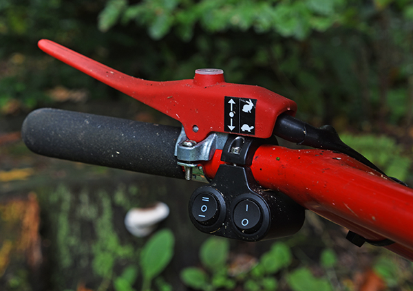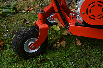 Het aandrijfsysteem is geschikt voor hellingen tot 15°, zodat je de machine gemakkelijk in een bus of op een trailer kunt laden. Met 2 stevige luchtbanden achter en 2 zwenkwielen voor, is de 1300WD zeer wendbaar. Sturen verloopt soepel met de stuurbeugel die onder de invoer is gemonteerd. Op de stuurbeugel is tevens de gewenste snelheid te bepalen en heb je goed zicht op de resterende batterijcapaciteit.